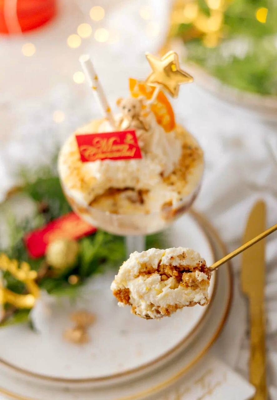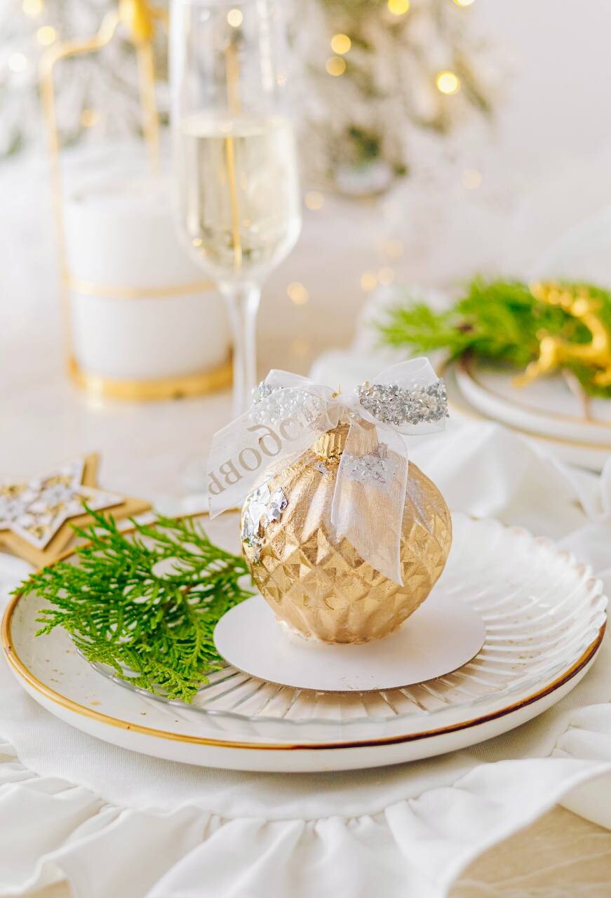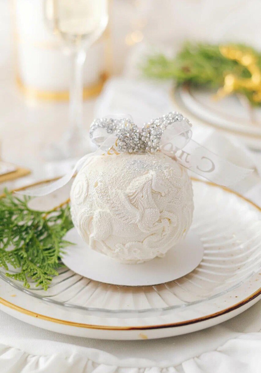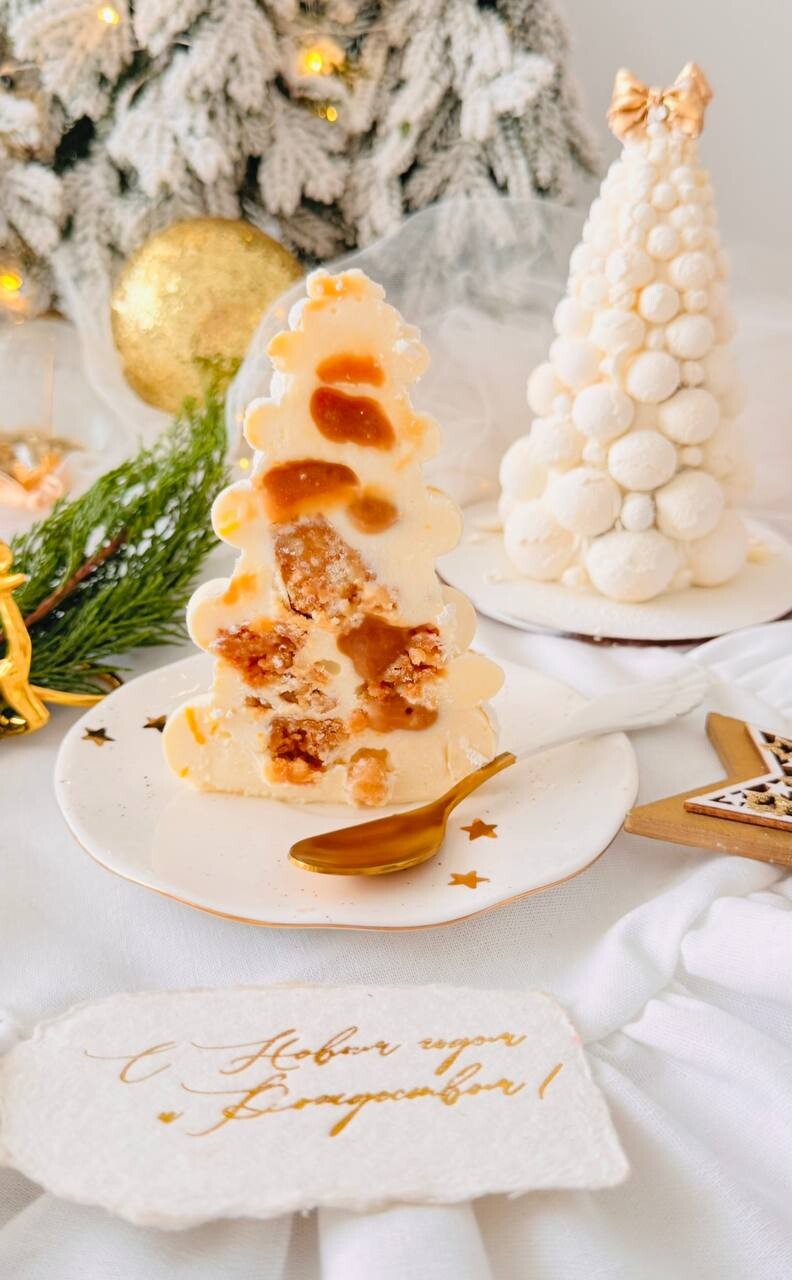 Это десерт с мягким вкусом сливочного мусса, лёгкой пряностью и длительным послевкусием. Хрустящий слой в десерте создаёт дополнительную текстуру, которая приятно похрустывает и дополняет вкус, создавая тот самый неповторимый и незабываемый вкус, — и всё это в виде новогодней игрушки.
