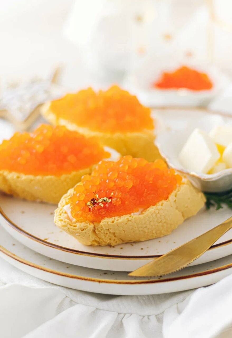 Бутерброд с икрой представлен в виде порционного пирожного, где: