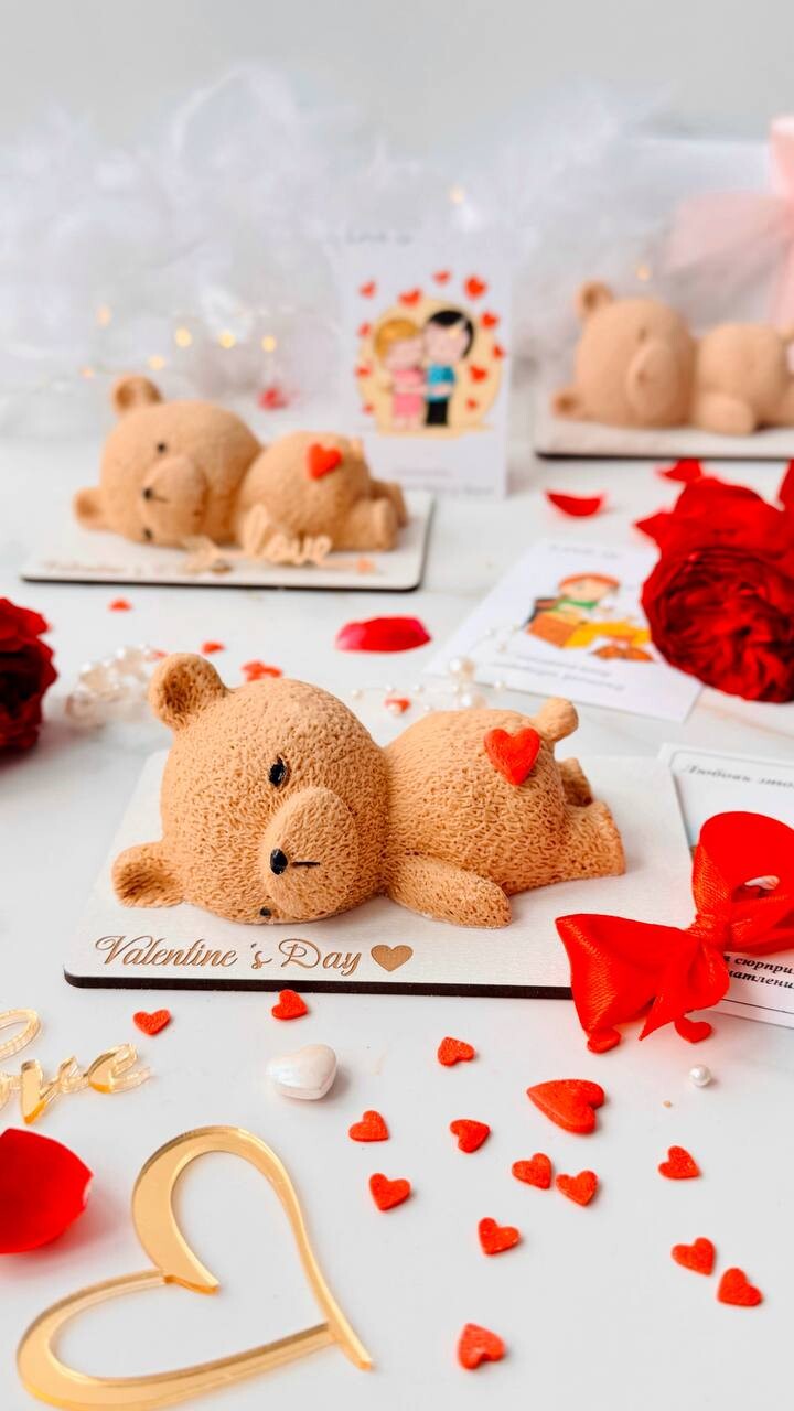 Десерт, который не оставит равнодушным ни одного человека! Мусс на молочном шоколаде с невероятно шелковистой текстурой, а внутри сливочно-ванильное облачко, которое своей нежной изысканностью дополняет первый слой мусса и мы получаем нежнейшее пирожное в виде милого мишки.
