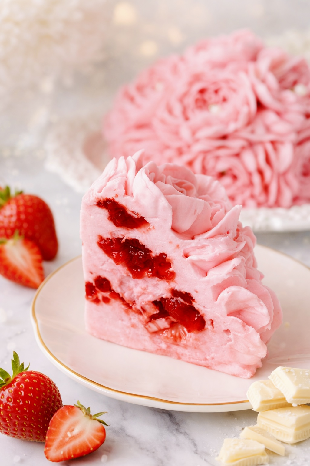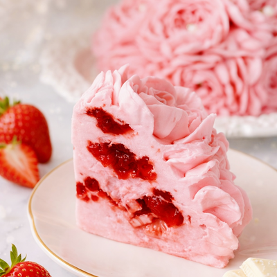 Изысканный десерт «Роза» - это миндальный мусс с нежной сливочной клубникой, настоящая симфония вкусов и текстур 🎶✨