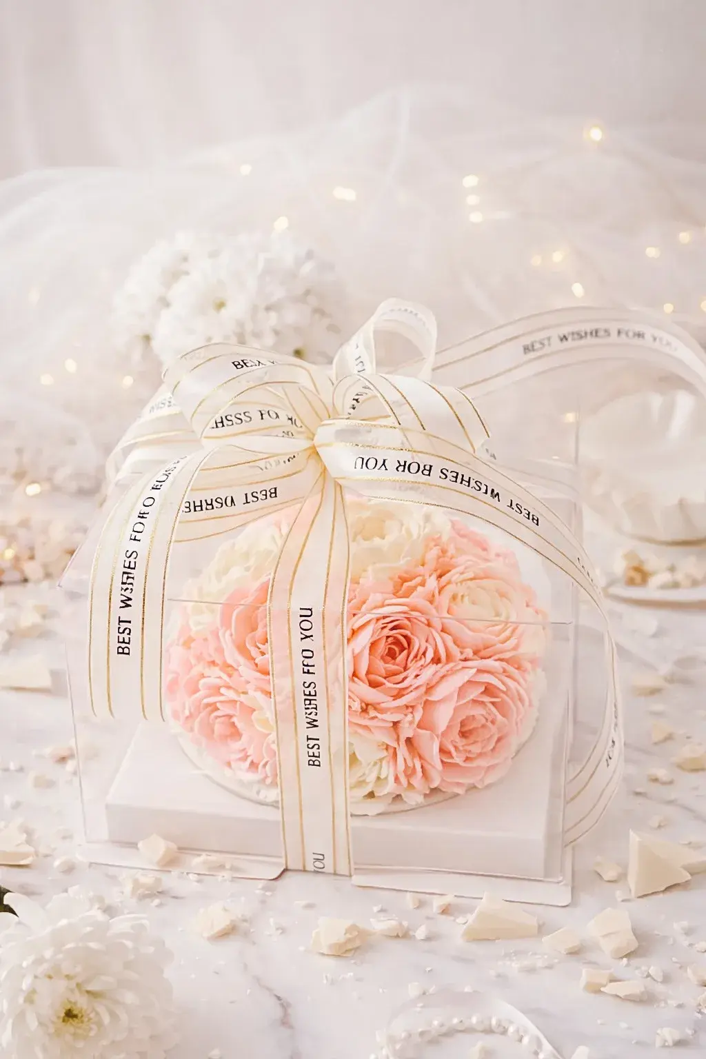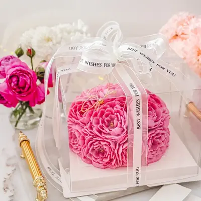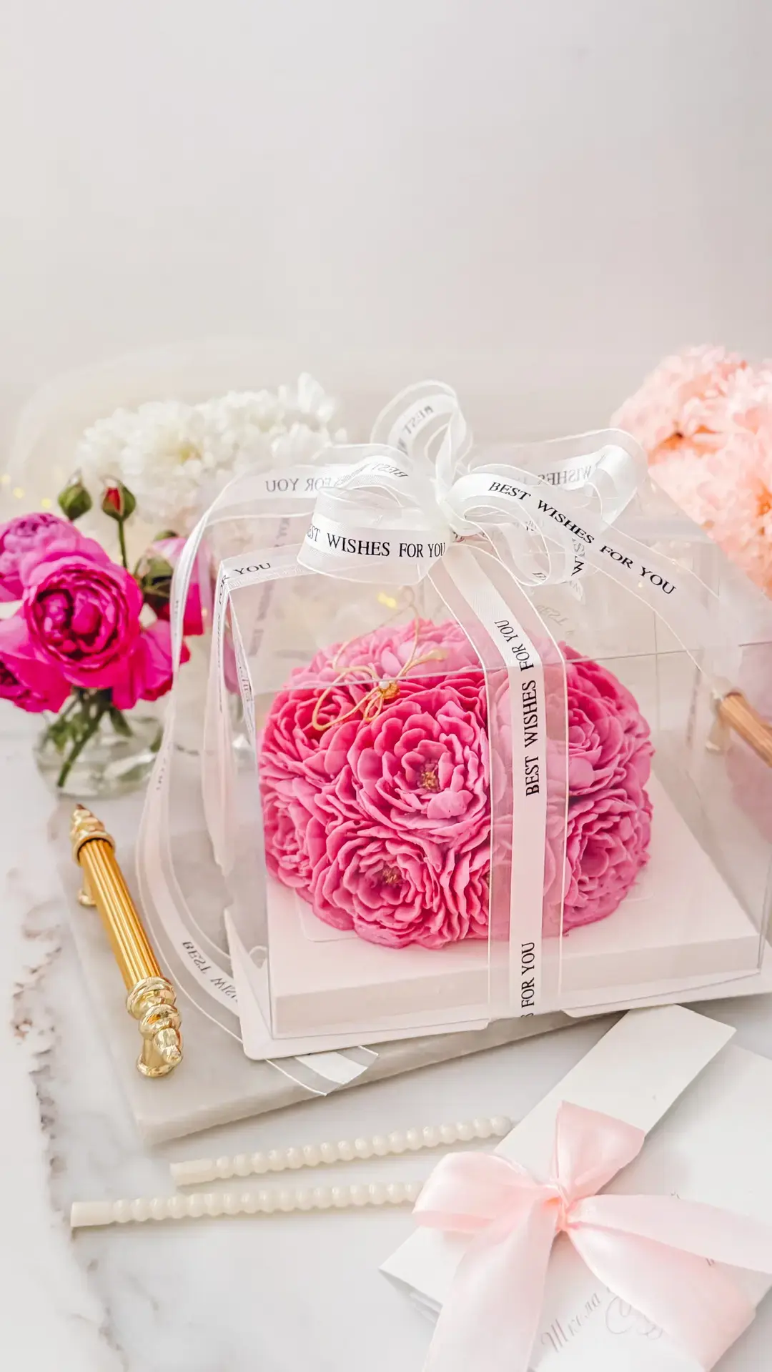 Муссовый бенто-торт в виде гортензии. Вкус апельсиновой начинки с клубнично-сливочным муссом - это сочетание цитрусовой свежести и ягодной сладости.
