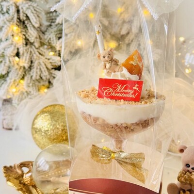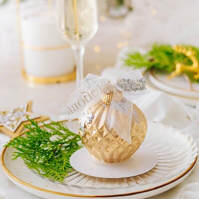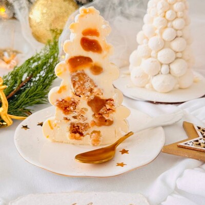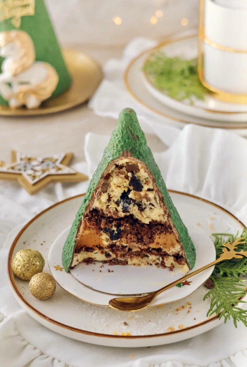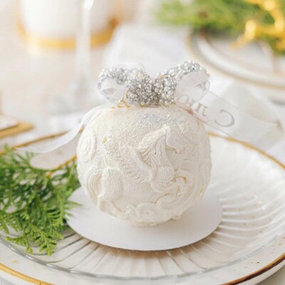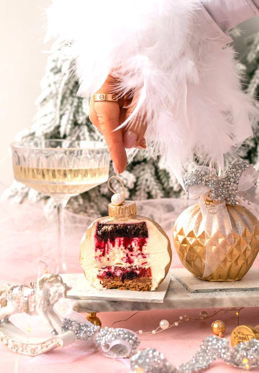 Это десерт с мягким вкусом сливочного мусса, лёгкой пряностью и длительным послевкусием. Хрустящий слой в десерте создаёт дополнительную текстуру, которая приятно похрустывает и дополняет вкус, создавая тот самый неповторимый и незабываемый вкус, — и всё это в виде новогодней игрушки.