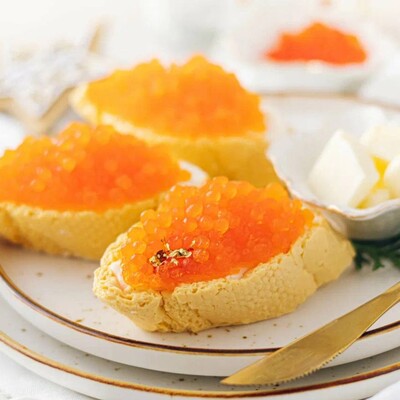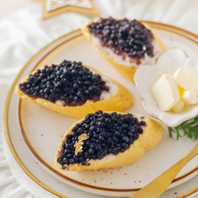 Бутерброд с икрой представлен в виде порционного пирожного, где: