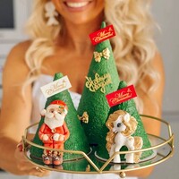В виде торта и ёлка как шоколадный подарок.