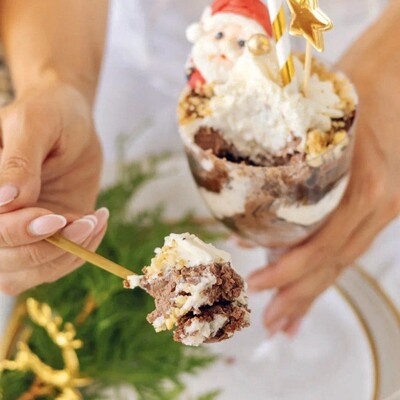 Каждый десерт уникален и легко трансформируется под любой праздник. Так, десерты в бокалах будут актуальны не только на Новый год, но и для любого другого праздника. А новогодние шары в виде пирожных легко превращаются в вазу с цветами.