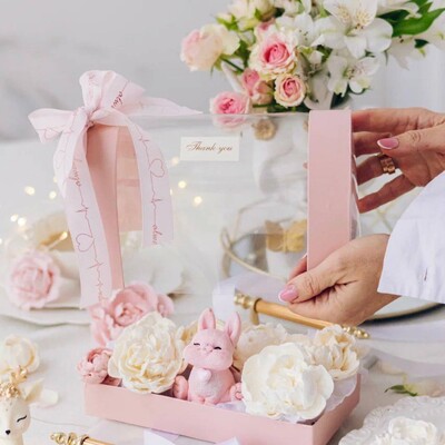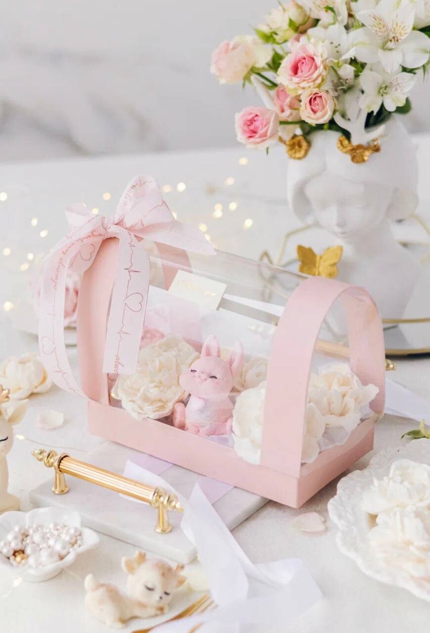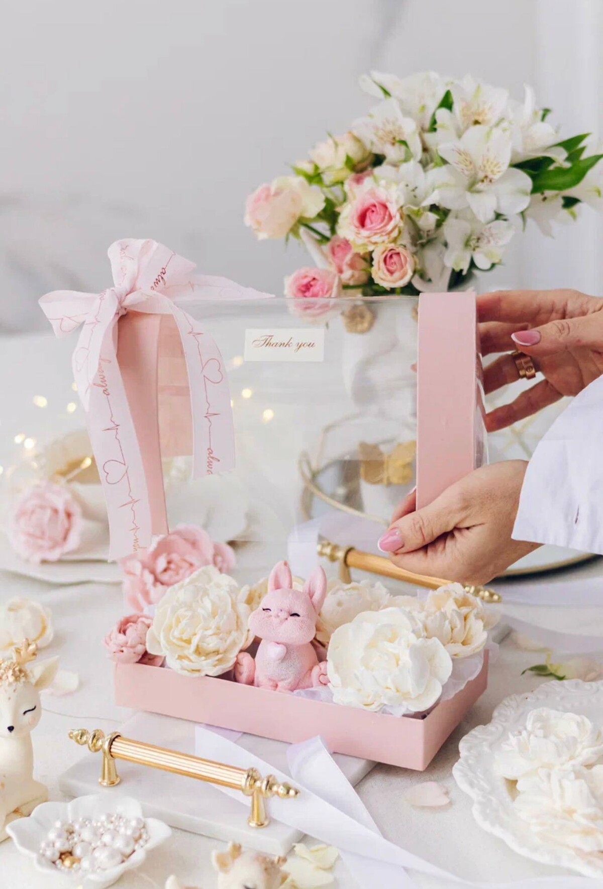 Такие коробки подойдут для живых цветов, цветов из маршмэллоу, цветов из зефира, для гибких шоколадных цветов, для шоколадных цветов, а также можно оформить с шоколадными фигурками, сухофруктами, пастилой.