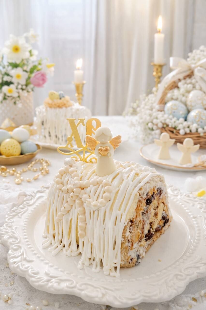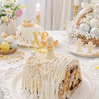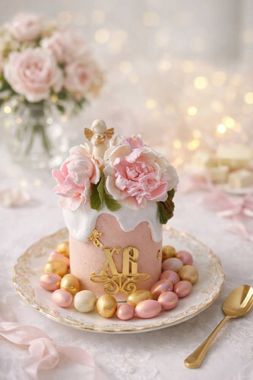 Следующий акцент — бархатный рулет, который обвивает творожную Пасху, добавляя ей неповторимую текстуру и визуальную привлекательность 🎀