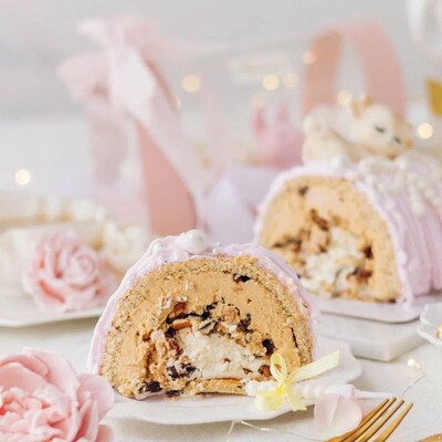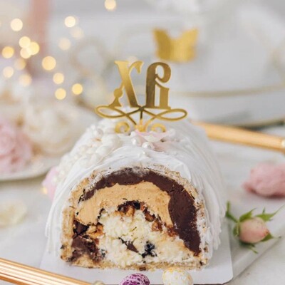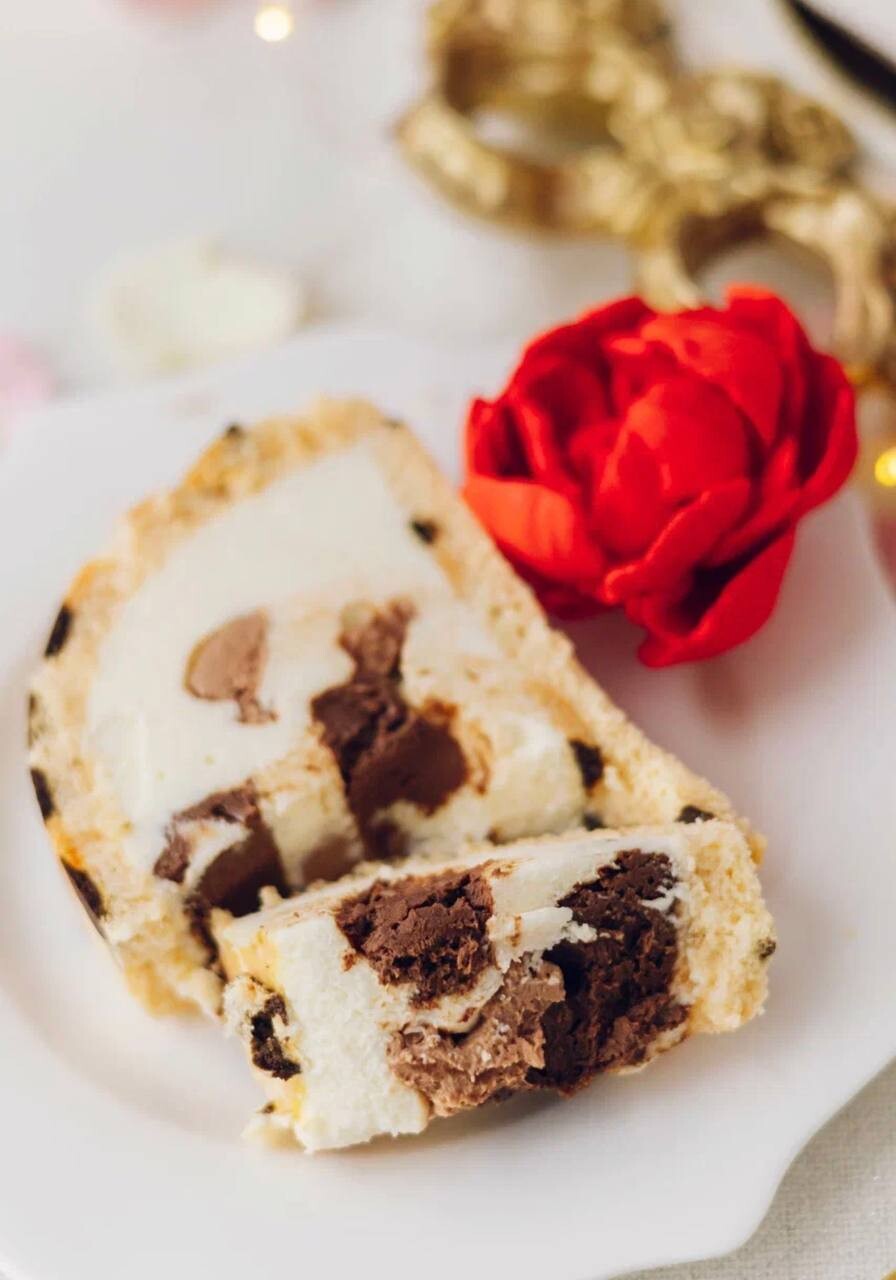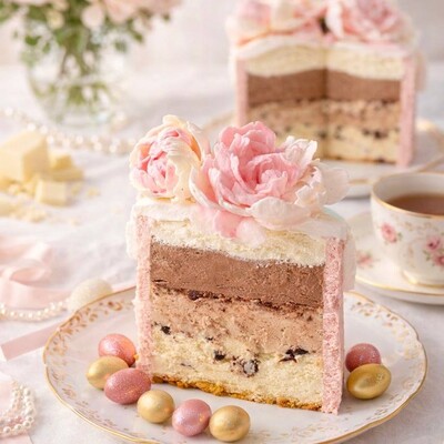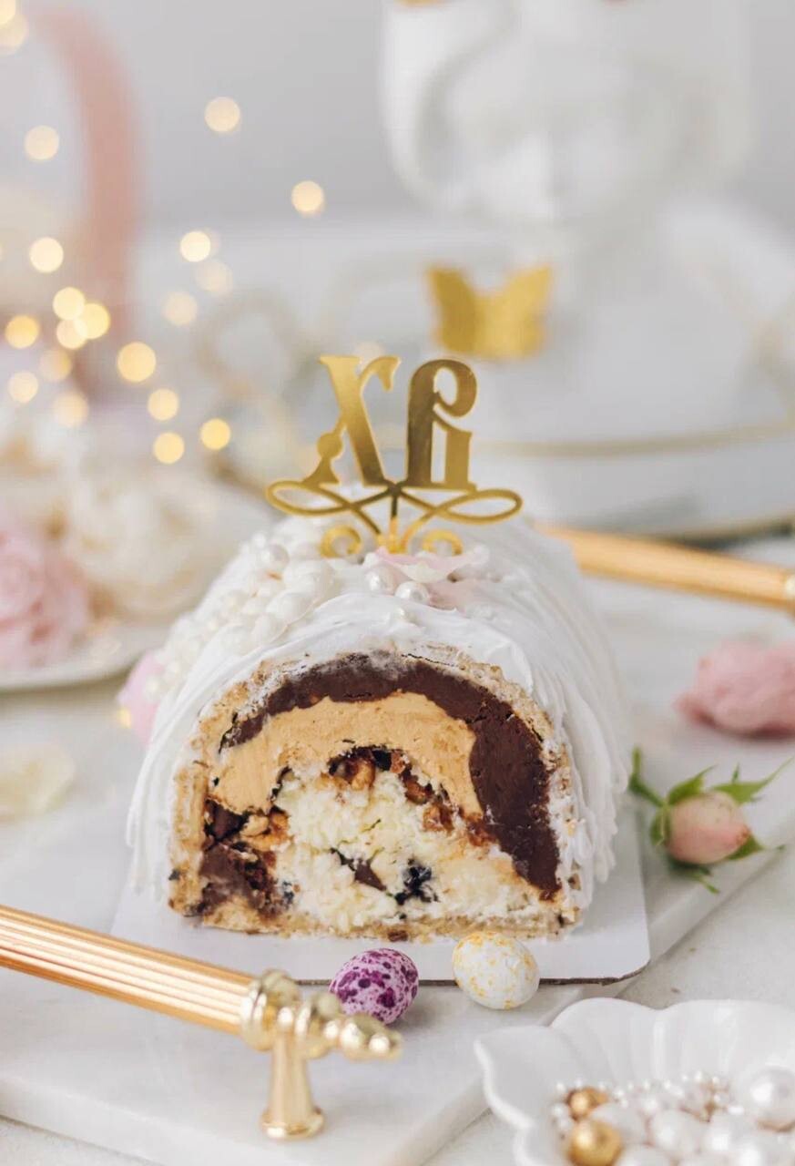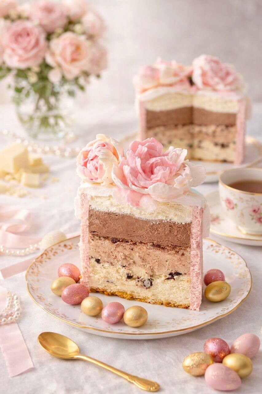 Пасха со вкусом кофейного мороженого, с добавлением грецких орехов и кусочков шоколада, обрамлённая бархатным рулетом 🎀✨