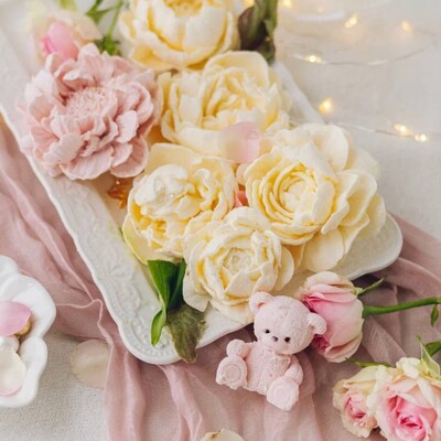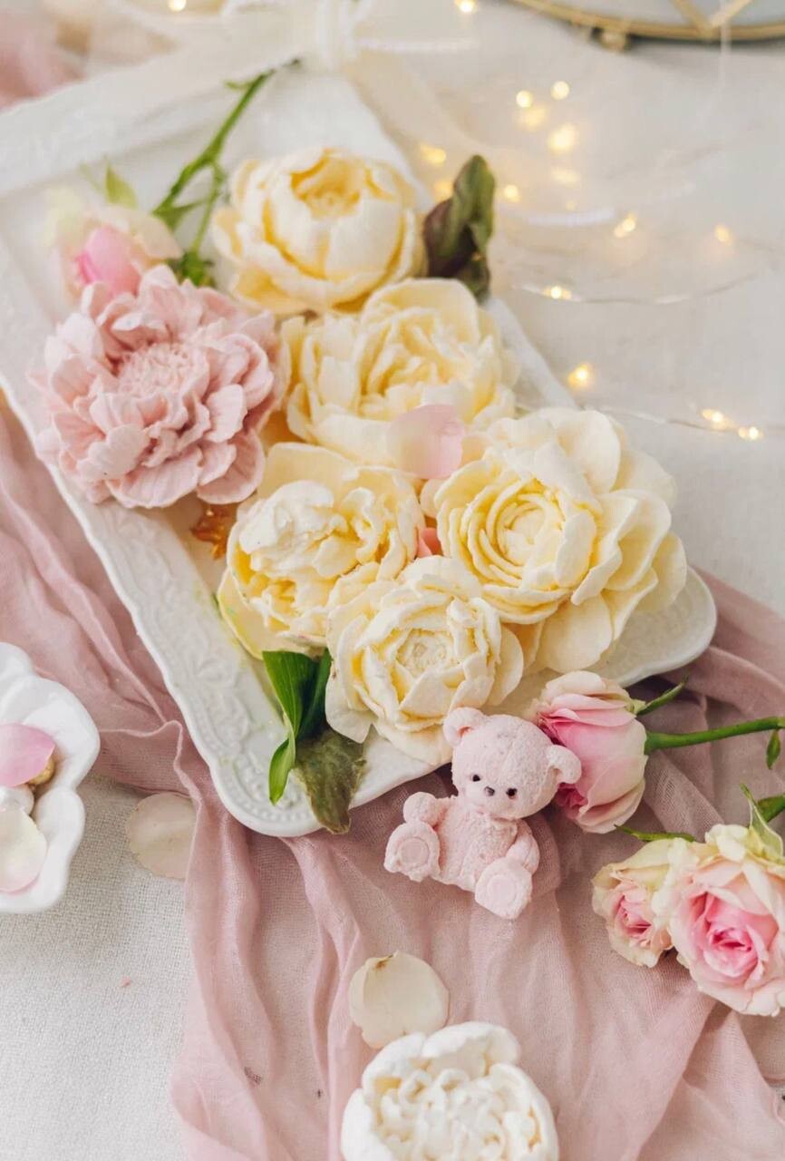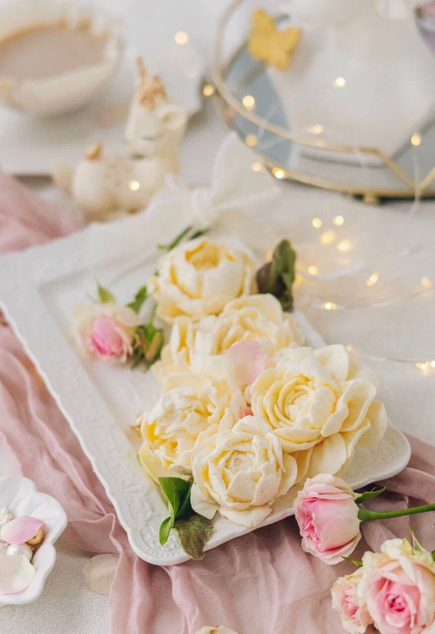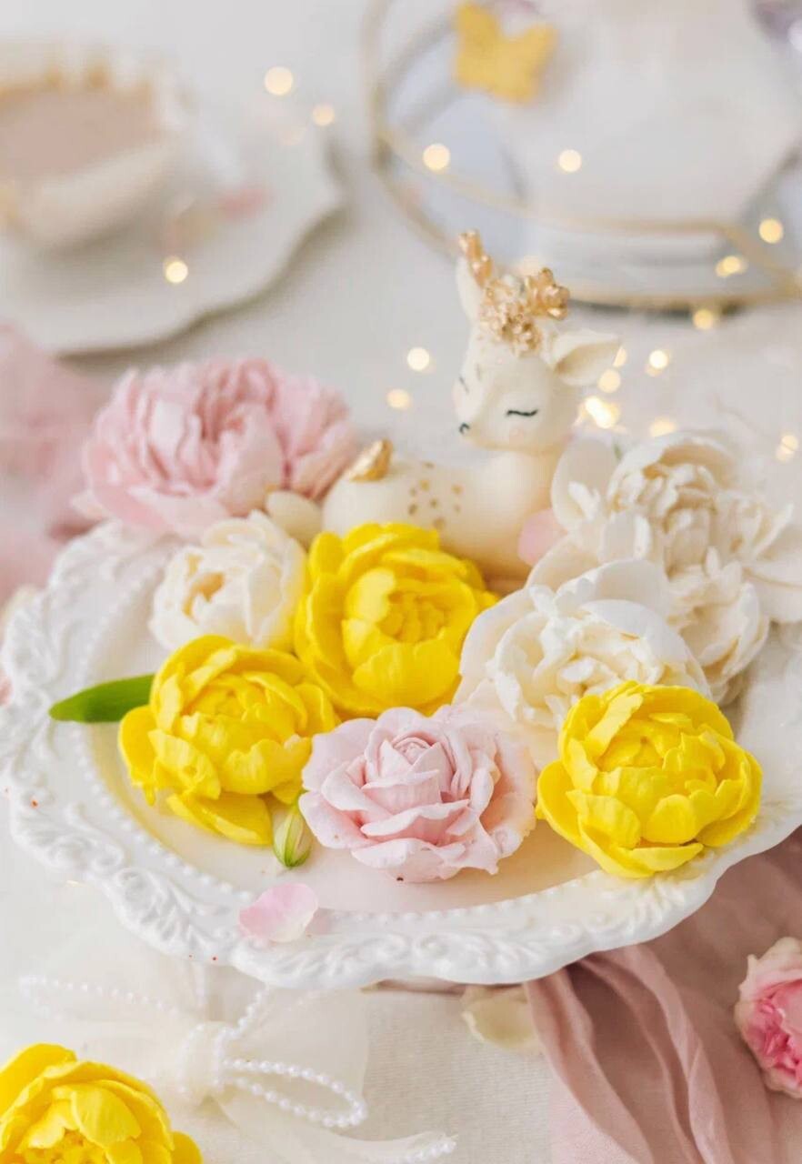 Цветы идеальны для украшения десертов, поскольку стабильно держат форму. Также мы не будем работать с насадками - я предлагаю работу с молдами: залил - достал - получил идеальный цветок. Никакого опыта и навыка не требуется, низкая себестоимость и легкость в работе.
