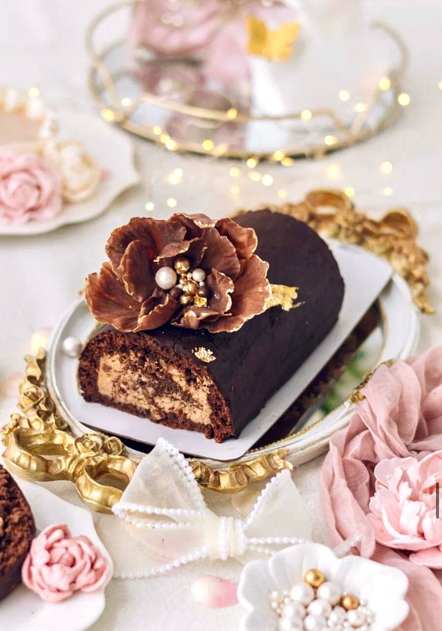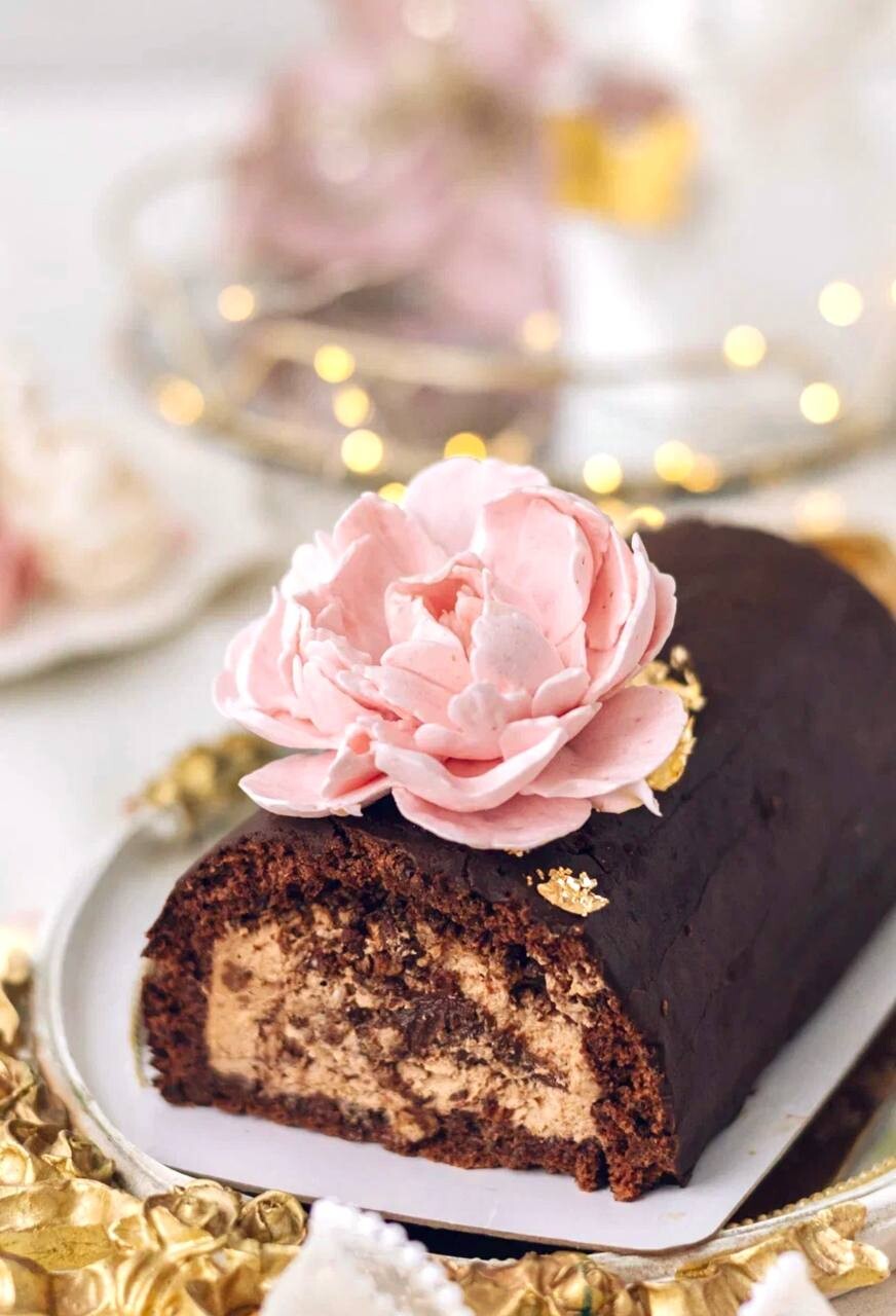 поверхность финишного крема, слегка посыпать какао, и вот вам элегантность и строгость. Можно добавить цветок - и рулет уже словно дорогое, вкусное украшение стола.